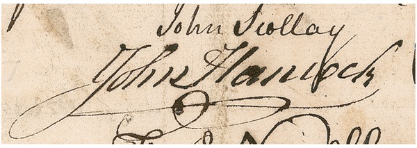 John Hancock and Samuel Adams: Months before the Boston Tea Party, patriot/brewer Adams and Declaration Signer Hancock sign a petition for a Boston liquor license