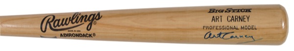 Two items: Official Rawlings Adirondack Big Stick Art Carney model baseball bat signed in blue felt tip on the barrel; and a Rawlings American League baseball, signed on the sweet spot in ballpoint. In fine condition. R&R COA.