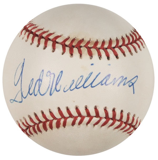 Official Rawlings American League baseball signed in blue ballpoint on the sweet spot. Accompanied by a certificate of authenticity from Upper Deck, as well as the original box, the cloth bag is not included. In fine condition, with a very mild shade of toning. Auction LOA Steve Grad/PSA/DNA and R&R COA.