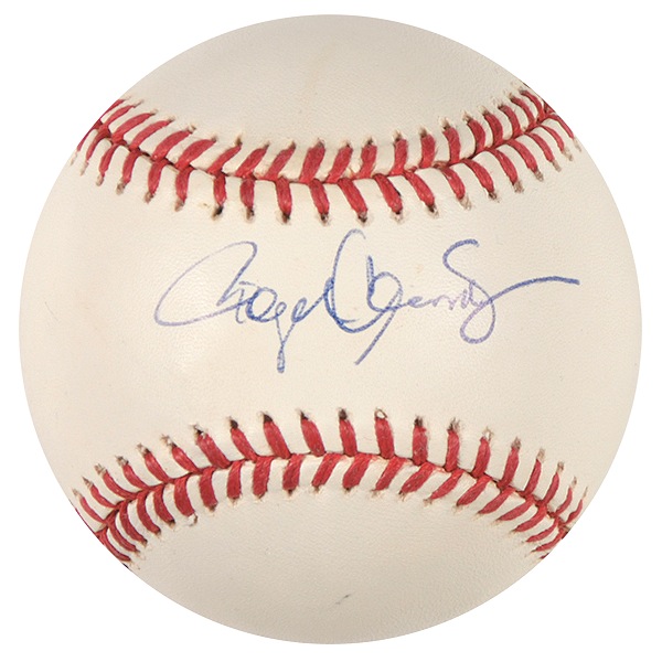 Official Rawlings American League baseball signed in blue ballpoint on the sweet spot. Accompanied by a certificate of authenticity from Upper Deck, as well as the original box and cloth bag. In fine condition. Auction LOA Steve Grad/PSA/DNA and R&R COA.