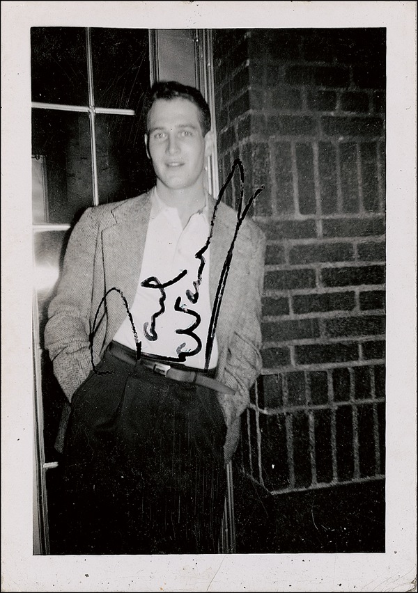 Vintage glossy 2.5 x 3.5 photo, signed in black ink. Scattered surface marks and slightly irregular ink adhesion, otherwise fine condition. An unusually early example! R&R COA.