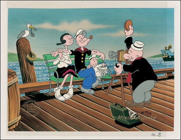 Limited edition animation cel titled “Park Bench,” AP #19/25 (from a total edition of 250), 12 x 9.25, signed in gold ink “Myron Waldman.” In very fine condition. R&R COA.