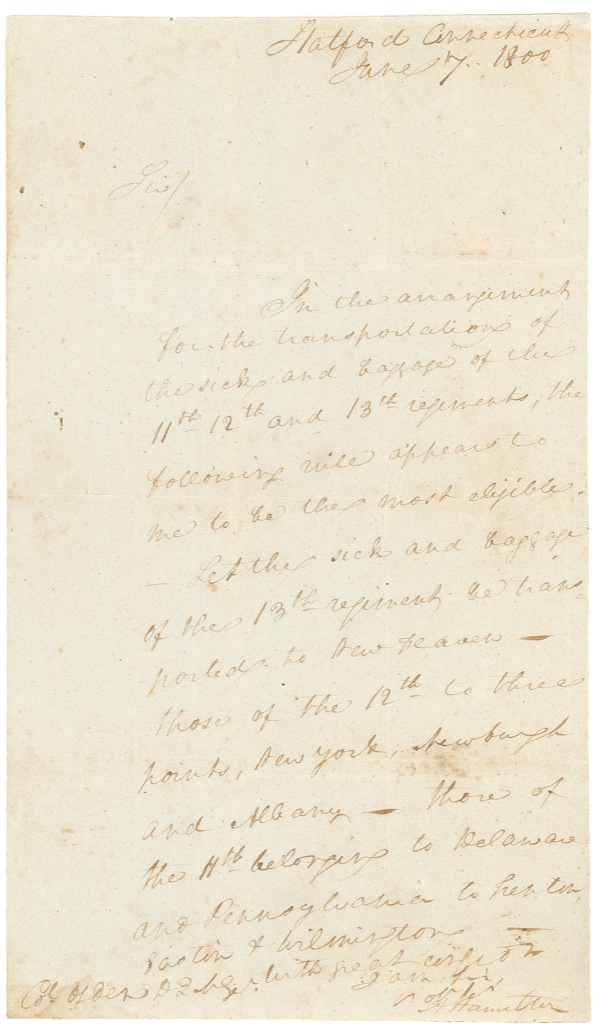 Hamilton arranges transportation for sick soldiers towards the end of the Quasi War