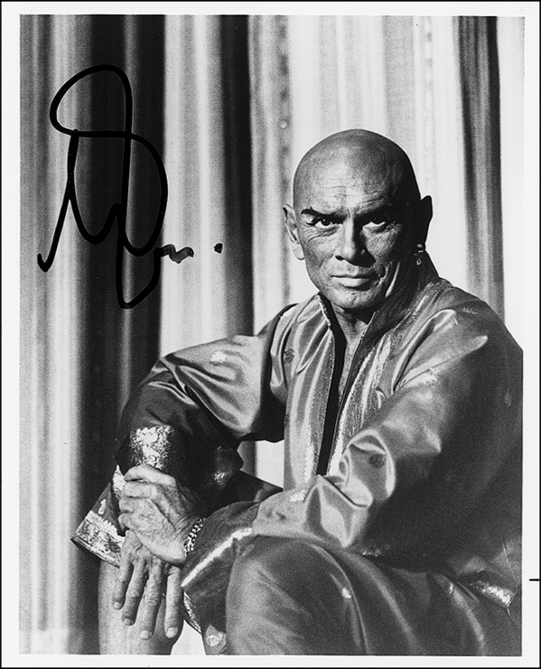 Glossy 8 x 10 photo of Brynner in his role from The King and I, signed in black felt tip. A few scattered dings and surface marks, otherwise fine condition. R&R COA.
