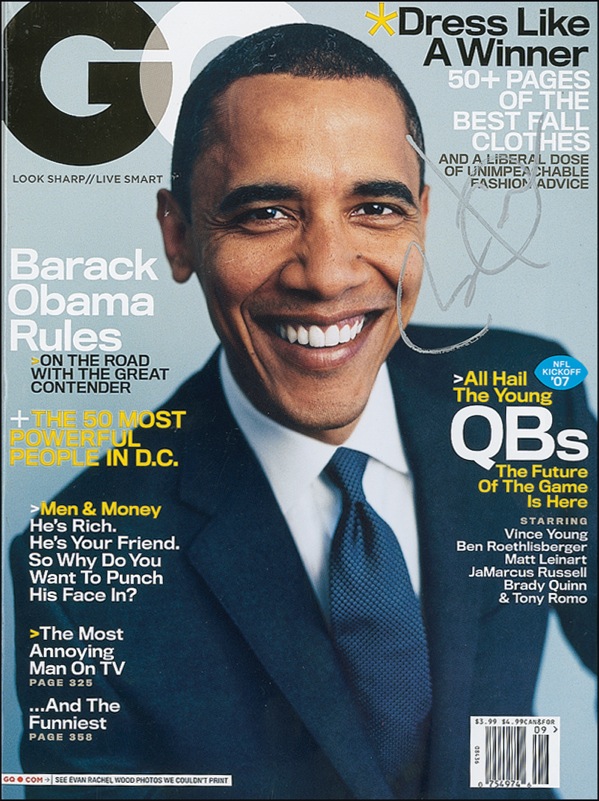Complete issue of GQ magazine for September 2007, signed on the cover photo in silver ink. In fine condition. R&R COA.