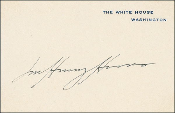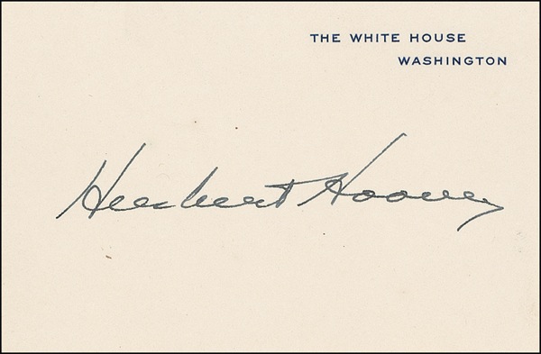 Two signed White House cards, signed in black ink, “Herbert Hoover,” and “Lou Henry Hoover.” In fine condition, with a mild shade of toning to Mrs. Hoover’s card. Auction LOA John Reznikoff/PSA/DNA and R&R COA.