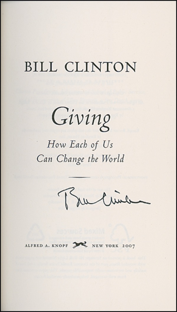 Signed book: Giving. First edition, first printing. NY: Alfred A. Knopf, 2007. Hardcover with dustjacket, 6 x 9.5, 240 pages. Signed in black felt tip on the title page. In very fine condition. R&R COA.