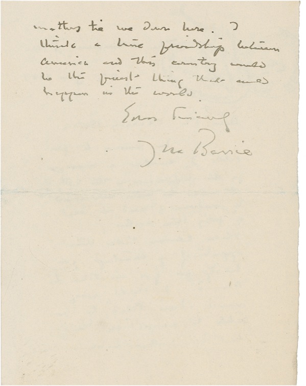 J. M. Barrie: “THE FINEST THING THAT WOULD HAPPEN IN THE WORLD”: BARRIE writes to a future Nobel laureate on Anglo-American relations