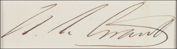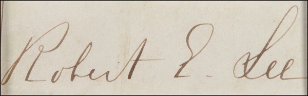 Two items: large ink signature, “U. S. Grant,” on an off-white 2.75 x 1 slip or card; and a scarce full ink signature, “Robert E. Lee,” on an off-white 2.25 x .75 slip affixed to the bottom of a CDV photo. The items are matted and framed together with two photos (the CDV image hidden by the mat) to an overall size of 27 x 22.25. Close trimming to left edge and a very subtle hint of soiling to Lee slip, otherwise fine condition. This full form of Lee’s signature is quite uncommon. R&R COA. Oversized.