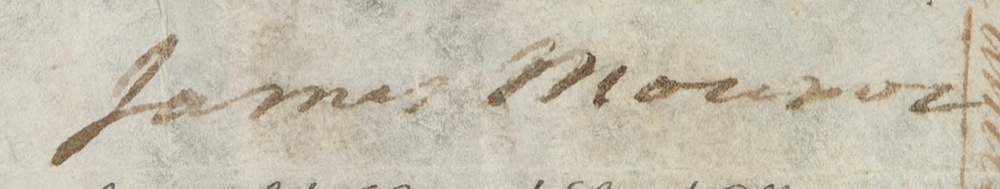 Partly printed DS as President, one page, 12 x 8, September 15, 1818. A grant for a parcel of land issued under the provisions of “the Acts of Congress appropriating and granting Land to the late Army of the United States, passed on and since the sixth day of May 1812.” Matted and framed with a portrait to an overall size of 28 x 16.25. In good condition overall, with intersecting folds (vertical crease to first name), soiling, staining, wrinkling, and rippling. The signature itself is otherwise clear and dark and rates as near fine. JSA/John Reznikoff Auction LOA and RRAuction COA. Oversized.