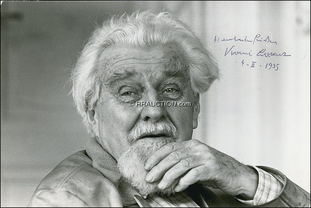 Austrian zoologist and ornithologist (1903–1989) who pioneered the modern study of animal behavior. Glossy 7 x 4.75 photo, signed and inscribed in ballpoint and dated February 4, 1985. Scattered surface marks (touching face) and a crease to background, otherwise fine condition. R&R COA.