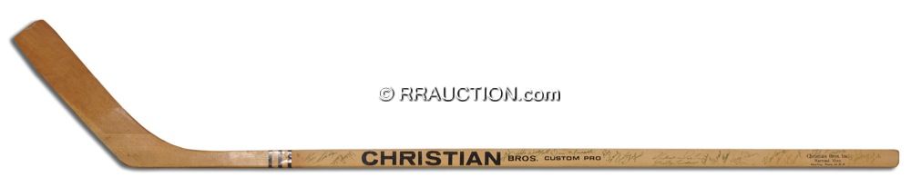 Official Christian Bros. hockey stick signed in felt tip on the shaft by over 15 members of the 1970 Stanley Cup Champion Bruins, including: Ace Bailey, Bobby Orr, Phil Esposito, Wayne Cashman, John Bucyk, Ed Johnston, and Ed Westphal. In fine condition, with a few signatures a shade or two light. Auction LOA Steve Grad/PSA/DNA and R&R COA..Oversized.