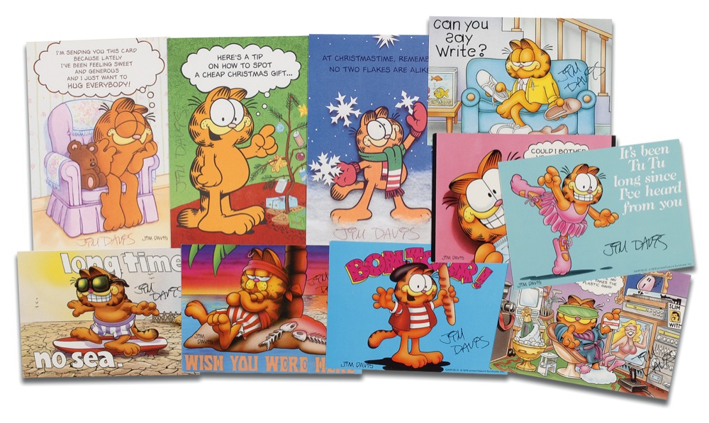 Ten Garfield-themed greeting cards and postcards, each signed in ink or felt tip on the image. In very fine condition. RRAuction COA.