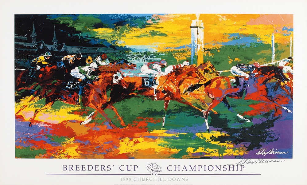 Exhilarating color 30 x 18 print titled Breeders’ Cup Championship, 1998 Churchill Downs, signed in black felt tip. Rolled and in fine condition. RRAuction COA.