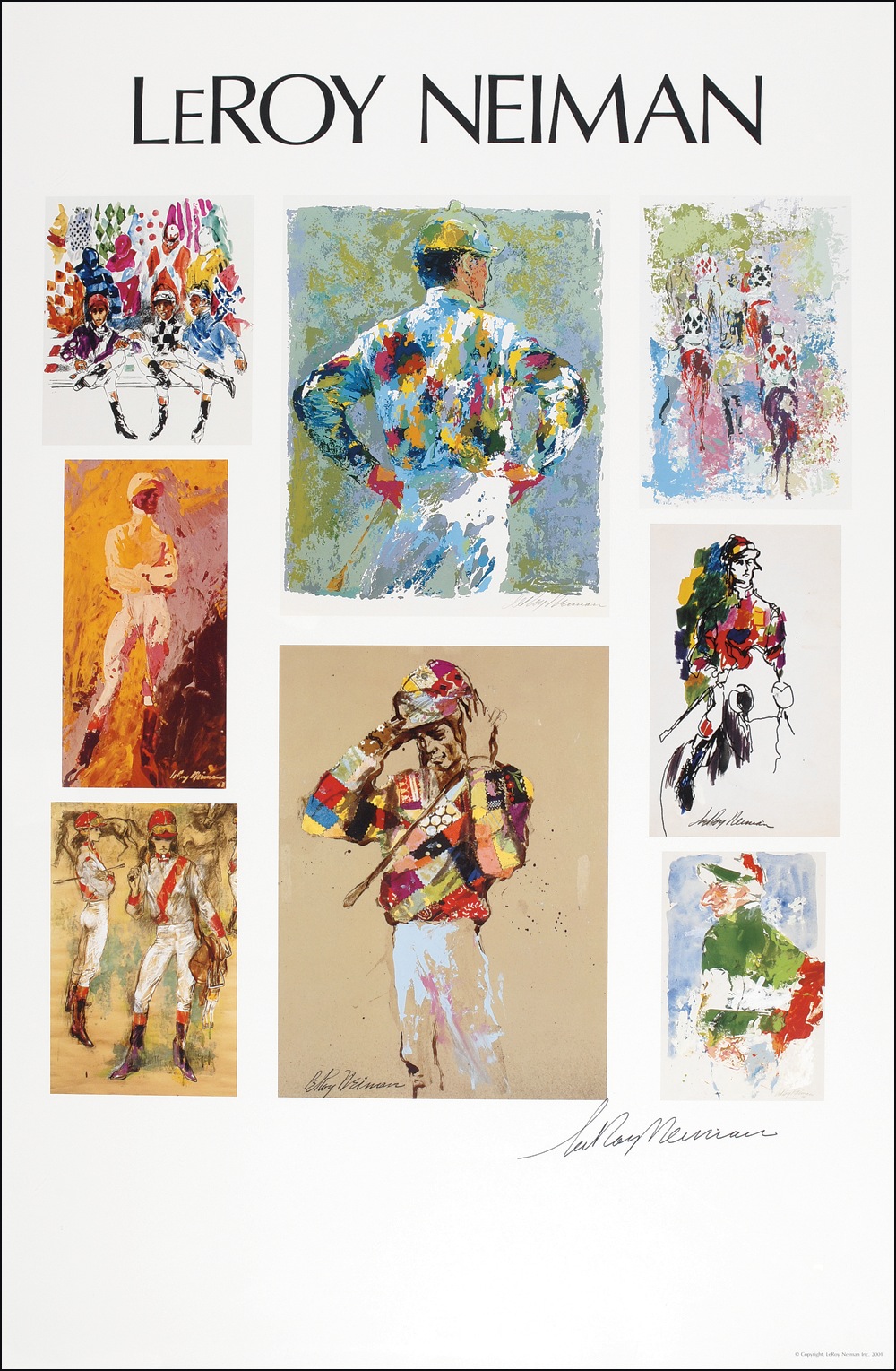 Color 24 x 36 composite print of eight of Neiman’s portraits of jockeys, signed in black felt tip. Rolled and in fine condition. RRAuction COA.
