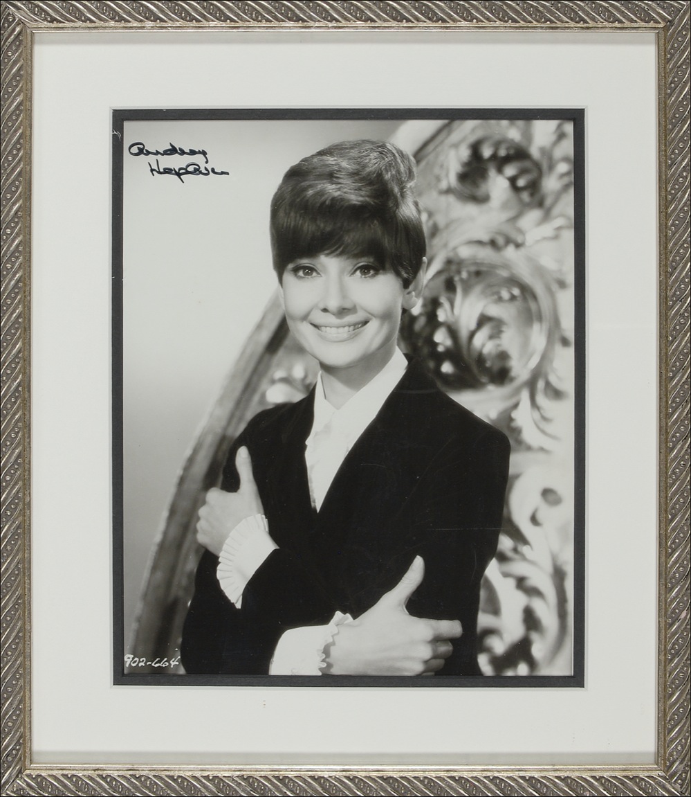 Charming glossy 8 x 10 photo of the pleasantly smiling actress in a closely cut coiffure, signed in black felt tip. Double matted and framed to an overall size of 11.5 x 13. In fine condition, with scattered light creases and surface marks to lower portion of image. RRAuction COA.