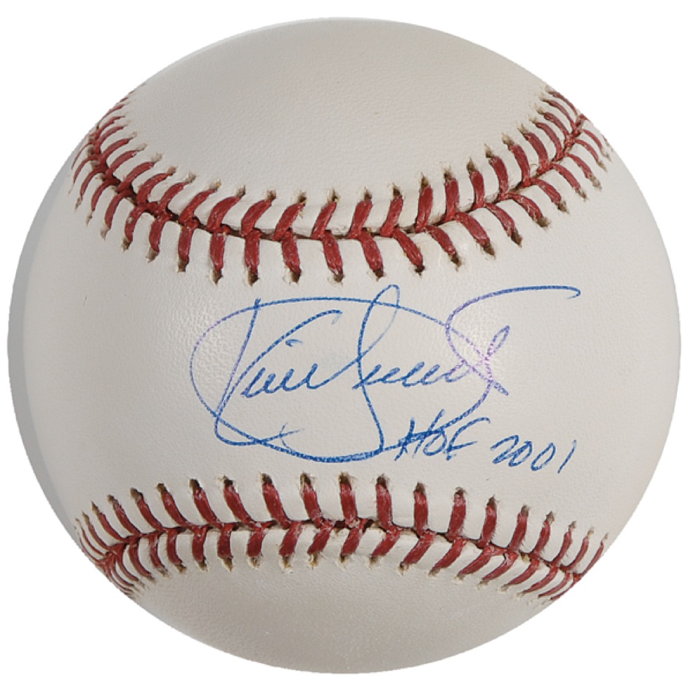 Official Rawlings Major League baseball, signed in blue ballpoint on the sweet spot “Kirby Puckett, HOF 2001.” Accompanied by a certificate of authenticity from PSA/DNA. In very fine condition. JSA/Mike Gutierrez Auction LOA and RRAuction COA.