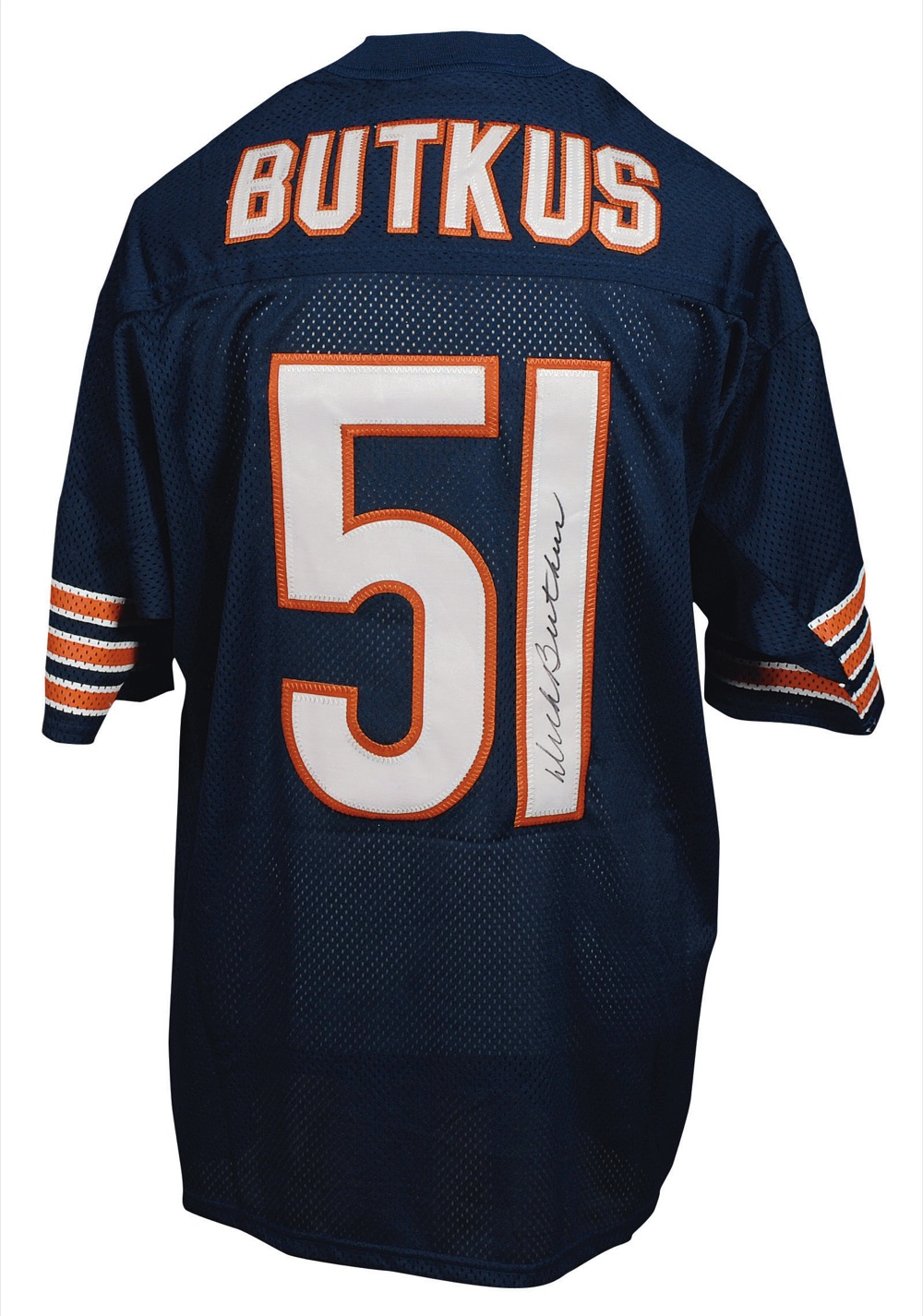 Official Sports Emporium replica Chicago Bears football jersey, with sewn-on letters and numbers, signed in black felt tip on the number on the back. In very fine condition. JSA/Mike Gutierrez Auction LOA and RRAuction COA.