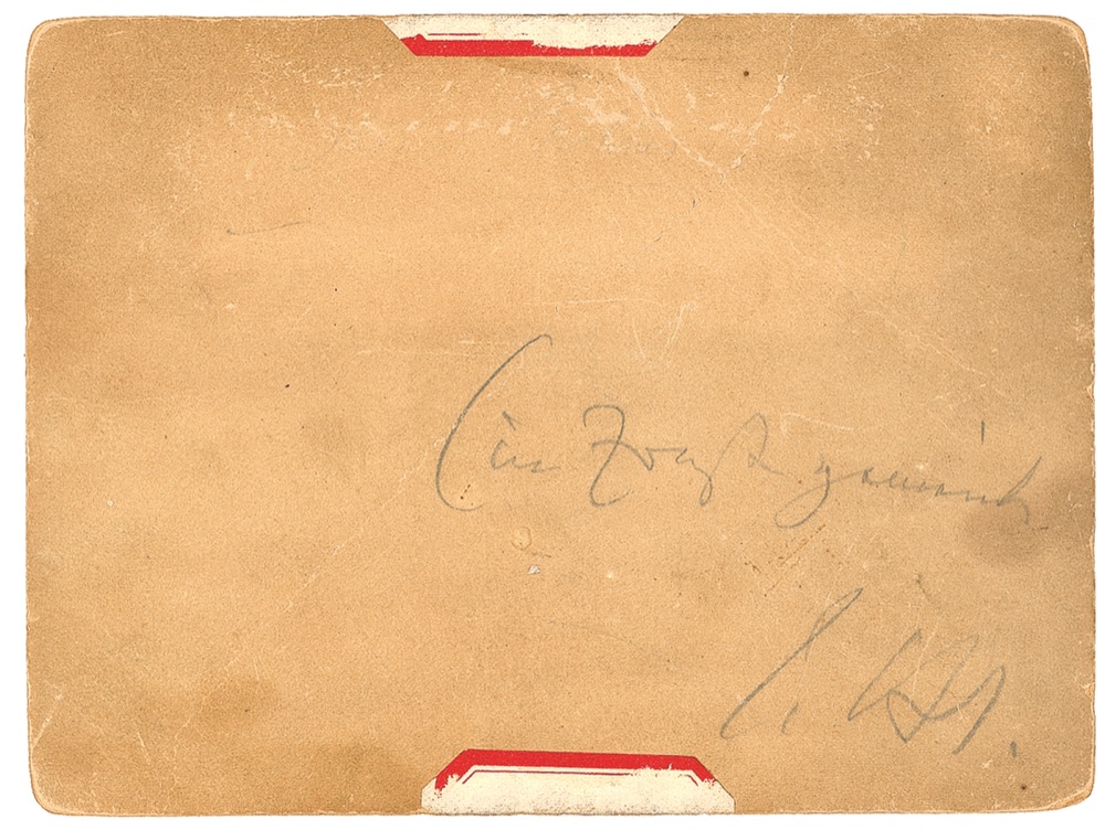 Having achieved a measure of musical transcendence known to a decidedly limited number of individuals, Johannes Brahms made use of a symphonic genius that yielded several classical masterpieces (his best-known work titled “Brahms Lullaby”). Widely considered a hierarch of the romantic period, Brahms’ influence has garnered the craft’s greatest laurels. Both traditionalists and innovators alike rank the maestro’s work among those brought to life by Johann Sebastian Bach and Beethoven. A unique memento celebrating that distinguished personage is offered in this signed albumen photograph picturing the classical German composer himself. Set atop a 3.75 x 5 mount, the image is that of the venerable musician in his later years, a mature gentleman immersed in a selection from his study. On the reverse, Brahms penciled the initials “J. Br.” with the writing retaining every bit of its legibility. This black-and-white showpiece, good overall, admits of surface faults attributable to the passage of time (the image area is lightly faded and bears some negligible creasing), yet its strong display properties overcome these subtle imperfections. A rare instance of Johannes Brahms’s image and signature found in one medium! The 3 x 4.25 photograph exhibits good condition. RRAuction COA.