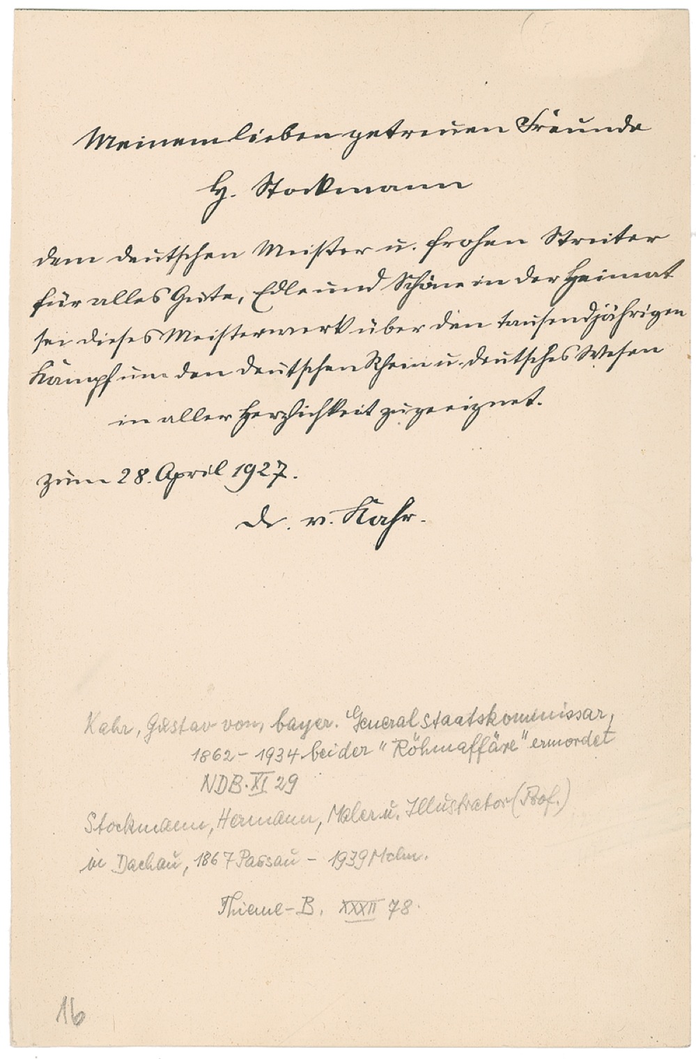 Gustav Ritter von Kahr Handwritten Letter Signed