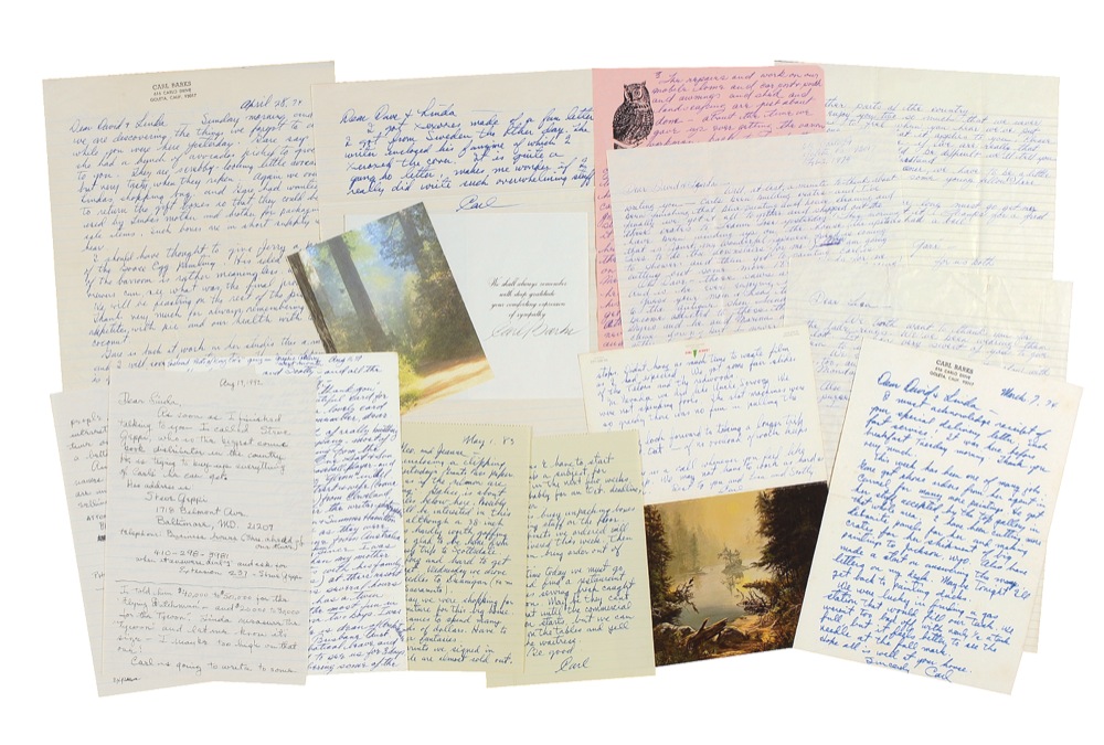 Legendary Disney artist. Archive spanning a 20-year period highlighted by six ALSs, all signed “Carl,” all written to family friends Dave and Linda Hampton, most from the mid-1970s and one from 1983.