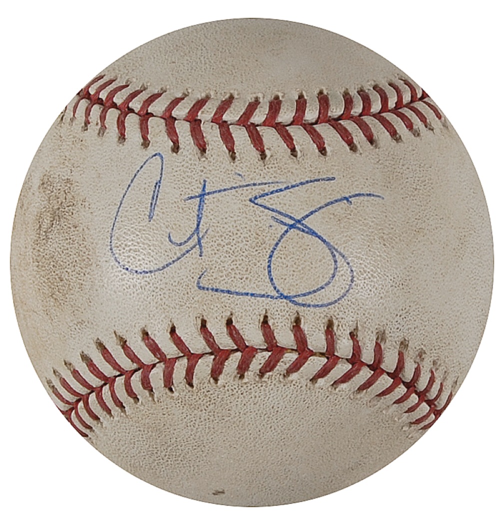 Official Rawlings game-used Major League baseball, from Game 6 of the 2004 ALCS against the New York Yankees, signed in blue ballpoint on the sweet spot. Accompanied by a certificate of authenticity from Steiner. In fine condition, with expected surface marks and soiling, and a Major League Baseball hologram affixed to side panel. Pre-certified Steve Grad/PSA/DNA and RRAuction COA.