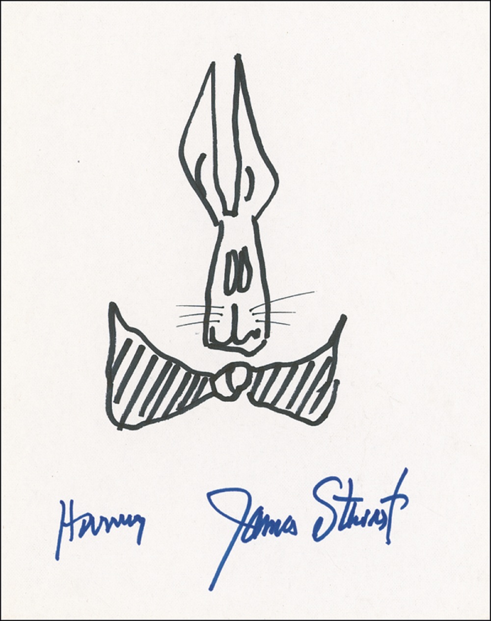 Two original signed felt tip sketches of Harvey on off-white 8 x 10 cards, each signed “Harvey” and “James Stewart.” In fine condition. RRAuction COA.