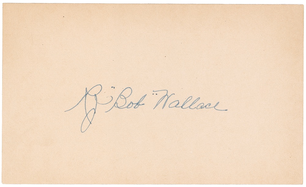 Hall of Fame pitcher, infielder, manager, umpire, and scout. Uncommon vintage ink signature, “R. ‘Bob’ Wallace,” on an off-white 5 x 3 card. In fine condition, with a mild overall shade of toning. Pre-certified Steve Grad/PSA/DNA and RRAuction COA.