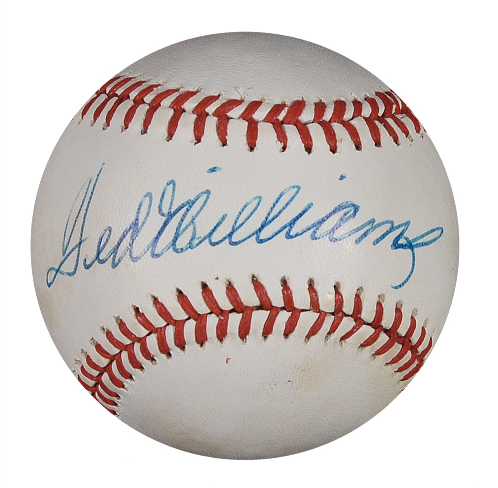 Official Rawlings American League baseball, signed in blue ballpoint on the sweet spot. In fine condition, with scattered light toning. Pre-certified Steve Grad/PSA/DNA and RRAuction COA.