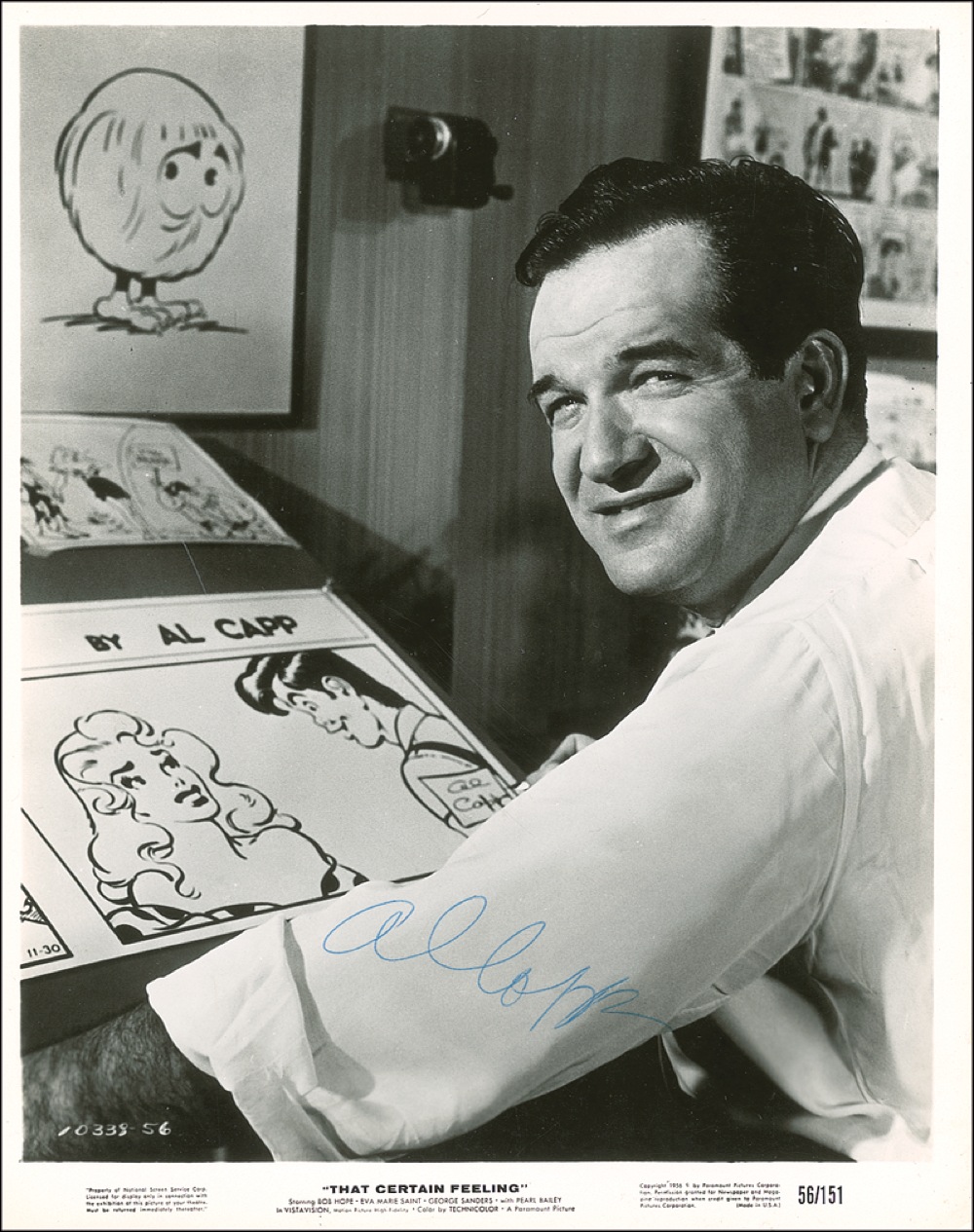 Glossy 8 x 10 promotional photo from That Certain Feeling of Capp at his board, signed in blue ballpoint. In fine condition. RRAuction COA.