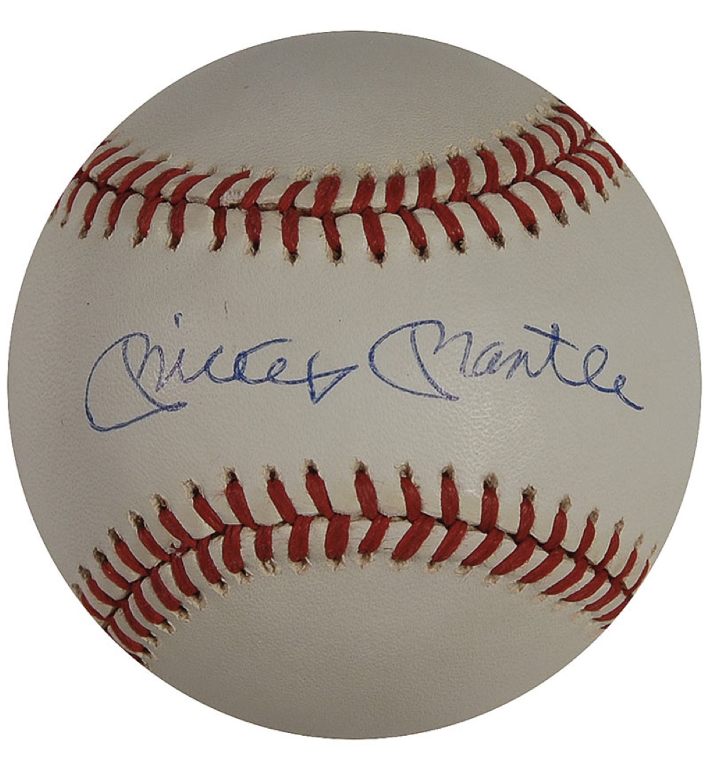 Official Rawlings American League baseball signed in blue ballpoint on the sweet spot. In fine condition. Pre-certified Steve Grad/PSA/DNA and RRAuction COA.