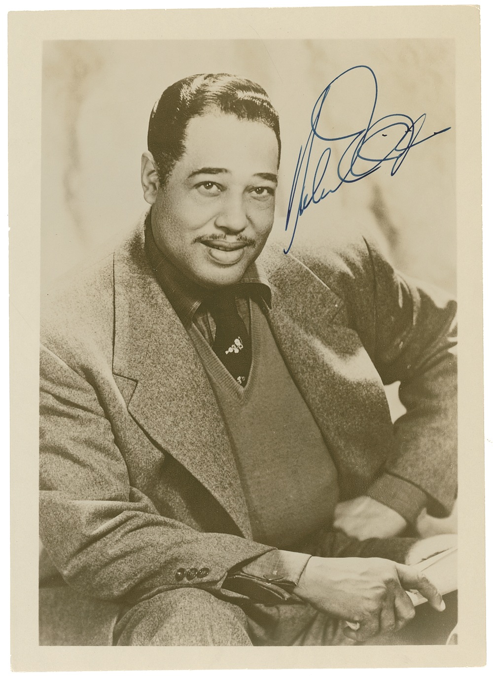Vintage glossy 5 x 7 photo, signed in blue ink. Accompanied by the original mailing envelope, postmarked August 27, 1959. In fine condition, with some scattered light creases to edges and corners. RRAuction COA.