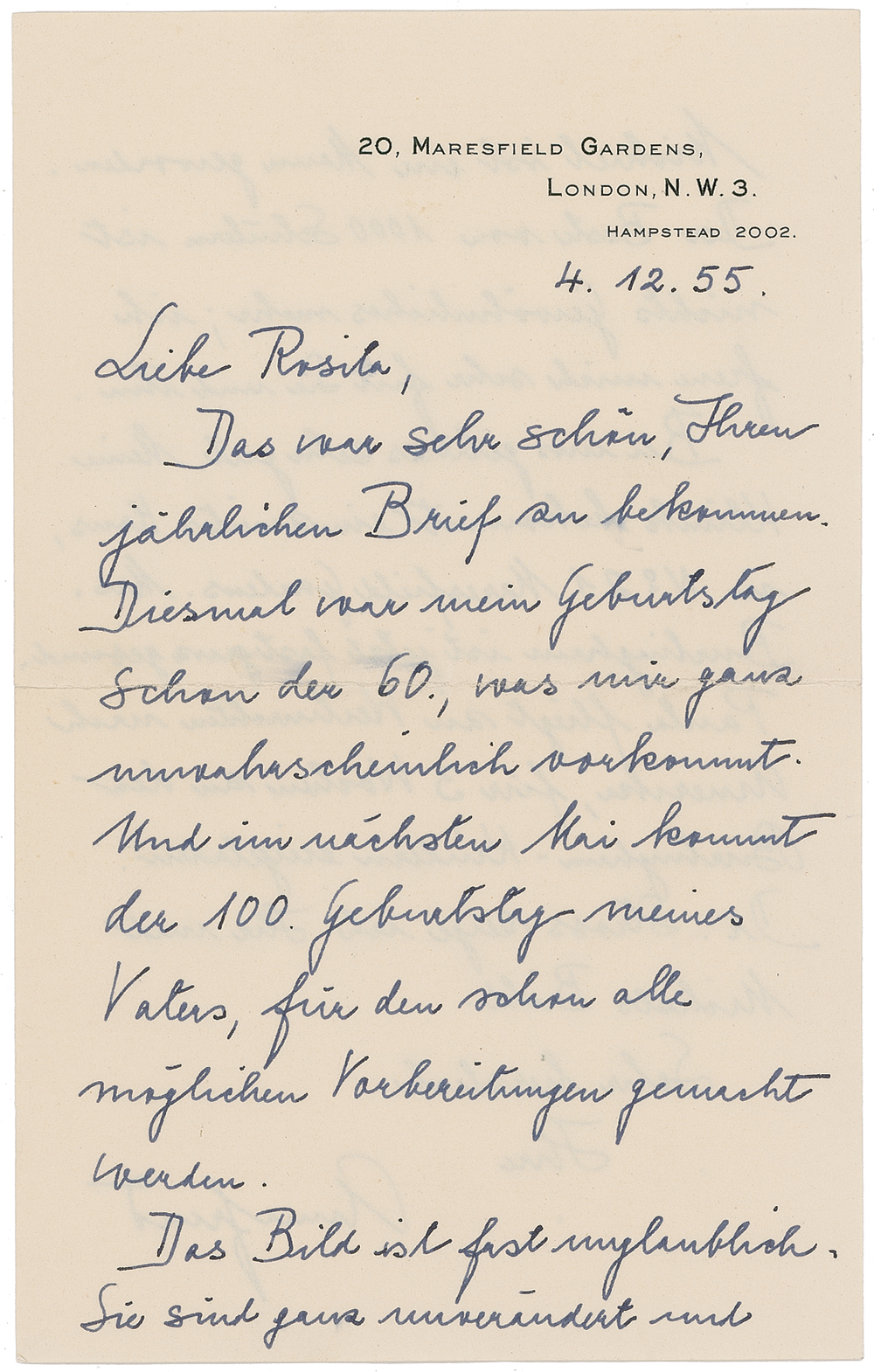 Another letter dated November 28, 1960. Freud reflects upon her old age: “Both my elder siblings, Mathilde and Martin, are now over seventy. A very strange feeling, that our generation is now the ‘old’ one, in place of our parents.”