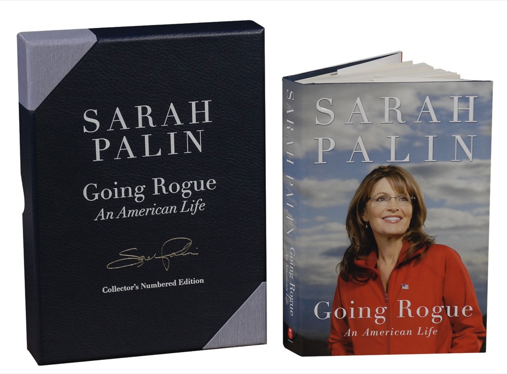 Signed book: Going Rogue: An American Life. Special autographed limited edition of 5000 copies of first edition, first printing (this being no. 3436). NY: Harper Collins, 2009. Hardcover with dustjacket, 6.25 x 9.25, 413 pages. Signed on a special prefatory page in black ink. Book is housed in its original leather presentation box. In very fine condition. RRAuction COA.