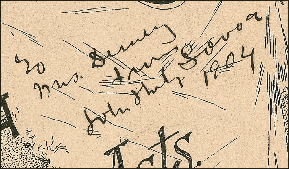 Signed book: The Bride-Elect. Comic Opera in Three Acts. First edition. Cincinnati: The John Church Company, 1897. Softcover, 7.5 x 11, 255 pages. Signed and inscribed with moderate contrast in black fountain pen on the illustrated title page, “To Mrs. Dewey from John Philip Sousa 1904.” In very good condition, with scattered soiling and edge chipping to the first page, and the spine heavily chipped and lacking front wrapper. Our consignor notes the book originated from the estate of Mildred Dewey, wife of Admiral George Dewey. Pre-certified PSA/DNA and RRAuction COA.