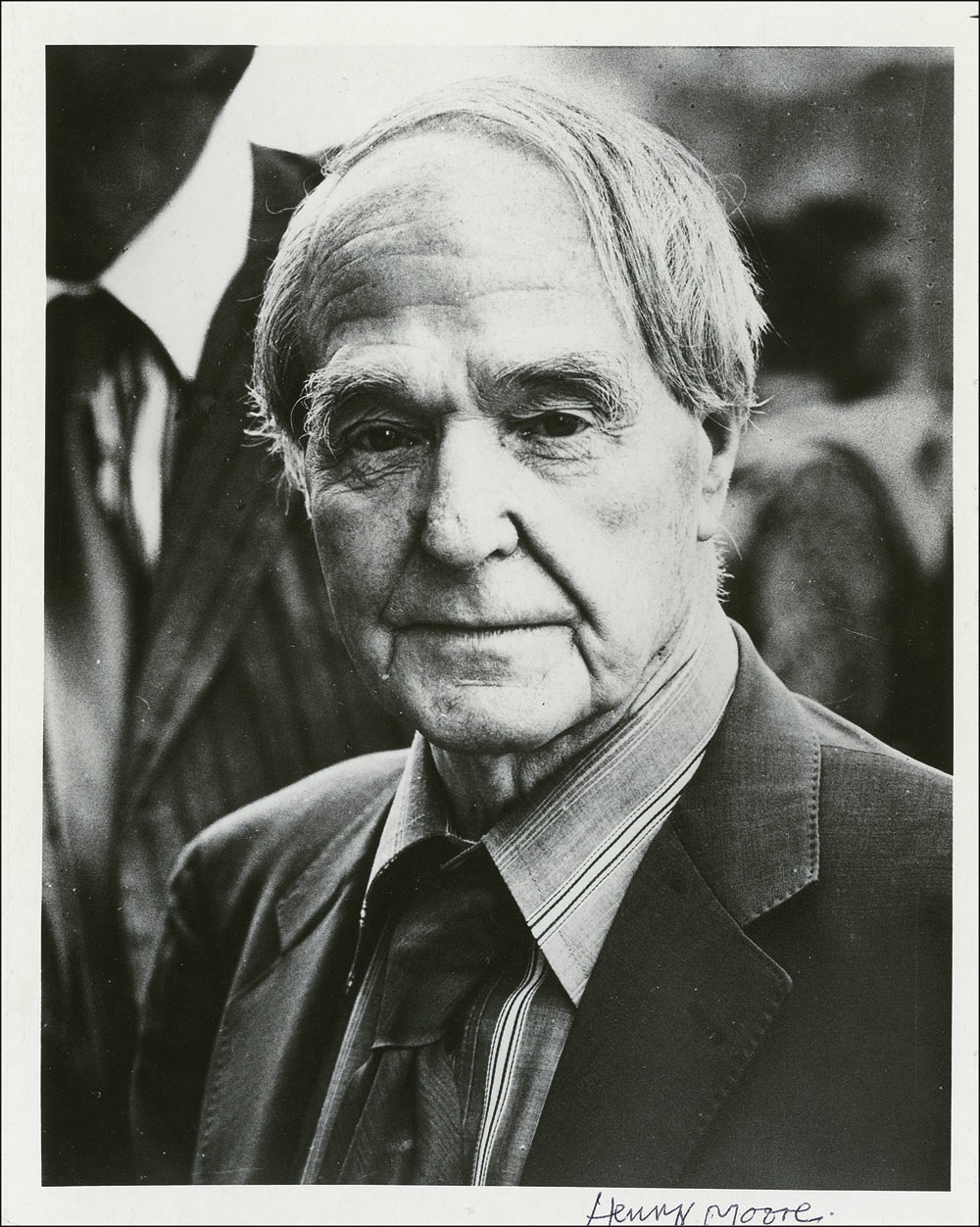 Glossy 8 x 10 head-and-shoulders portrait, signed in the lower border in black ballpoint. In fine condition, with scattered creasing to the bottom corners and near Moore’s chin. RRAuction COA.