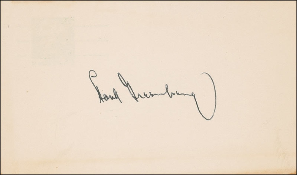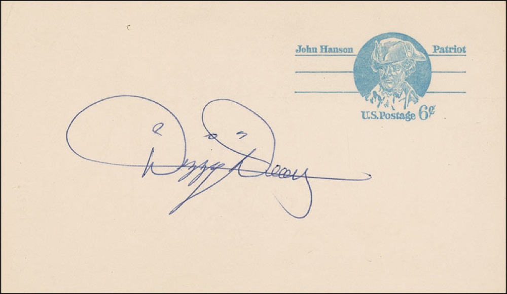 Two items: blue ballpoint signature, “’Dizzy’ Dean,” on the front of a six-cent postcard; and black ballpoint signature, “Hank Greenberg,” on the back of a five-cent postcard. In fine condition, with small corner creases to the Dean card and edge toning to both. Pre-certified Steve Grad/PSA/DNA and RRAuction COA.
