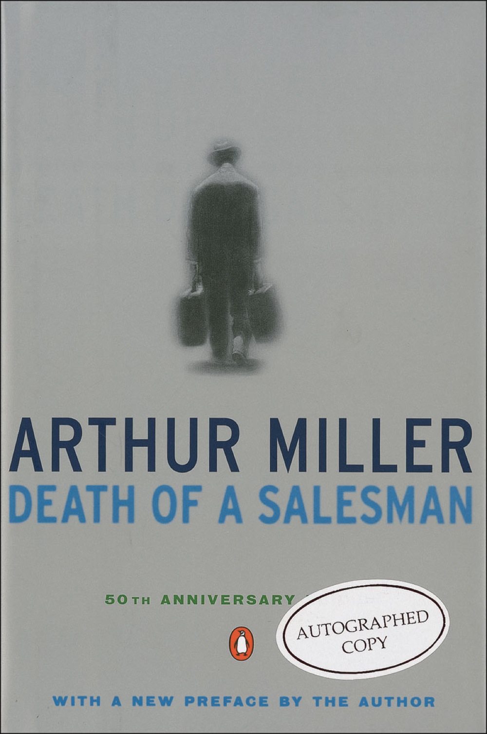Signed book: Death of a Salesman. 50th anniversary edition. NY: Penguin Books, 1999. Hardcover with dustjacket, 5.75 x 8.5, 142 pages. Signed on the title page in black ink. In fine condition, with promotional label affixed to front dustjacket. RRAuction COA.