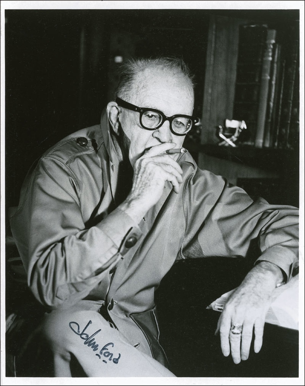 Highly respected, multiple-Oscar winning American film director (1894–1973) who helmed such classics as Stagecoach, The Grapes of Wrath, and The Searchers. Glossy 8 x 10 photo of Ford enjoying a cigar, signed in black felt tip. Some scattered light surface marks and impressions, otherwise fine condition. Pre-certified PSA/DNA and RRAuction COA.