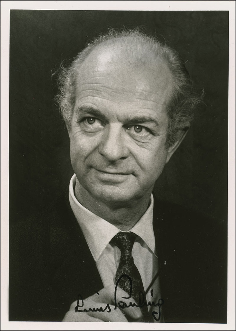 American chemist (1901–1994) who holds the unique distinction of winning Nobel Prizes in both the Chemistry (1954) and Peace (1962) categories. Glossy 5 x 7 head-and-shoulders photo, signed in black felt tip. In fine condition, with a bit of light contrast to a couple strokes of signature. RRAuction COA.