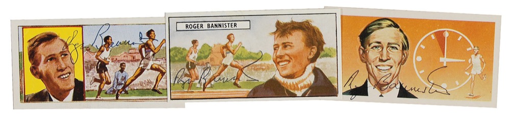 Three original 2.75 x 1.5 trading cards from the ‘Great Achievements’ set issued by Ty-Phoo Tea in 1962, the ‘Famous People’ set issued by Lyons Maid ice cream in 1966, and the ‘Famous People’ set issued by ‘Brooke-Bond’ tea in 1969, each individually front-signed in black ballpoint. In overall fine condition. Accompanied by three unsigned cardboard photos. RRAuction COA.