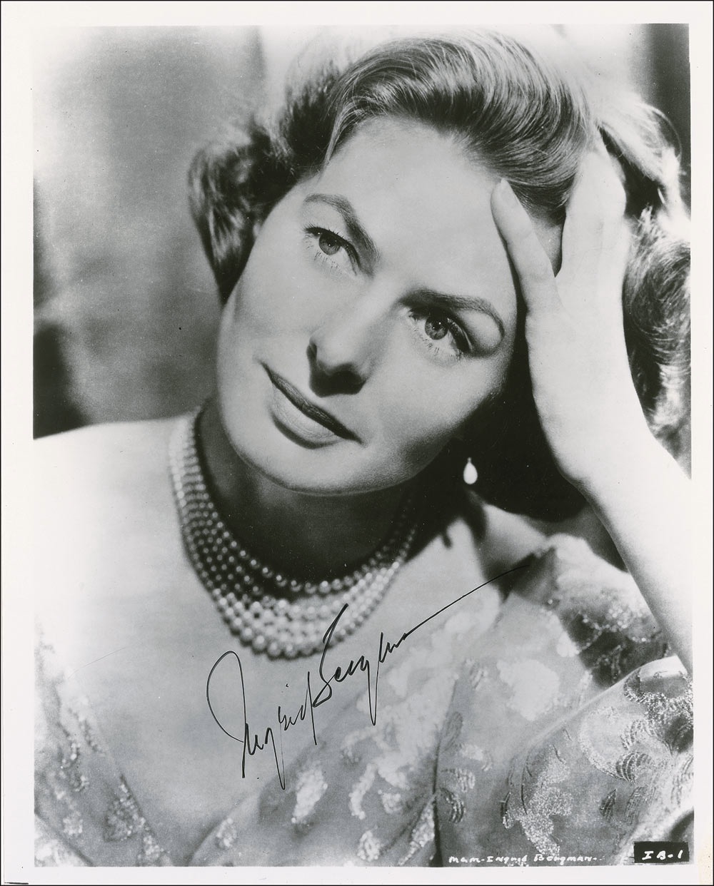 Mesmerizing glossy 8 x 10 studio portrait signed in black felt tip. In fine condition, with a few small creases touching her lips and face and a bit of staining at the lower right corner. Pre-certified PSA/DNA and RRAuction COA.