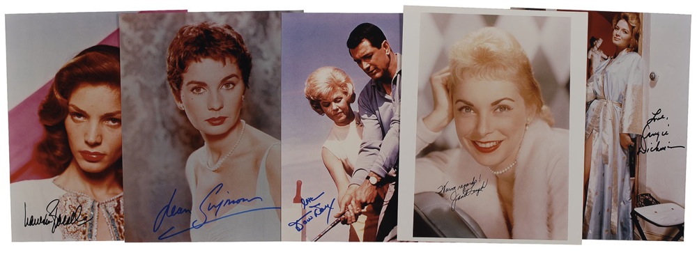 Five color glossy 8 x 10 photos, each signed in felt tip by the respective actress pictured. Signers are: Doris Day, Angie Dickinson, Lauren Bacall, Jean Simmons, and Janet Leigh. In fine condition. RRAuction COA.