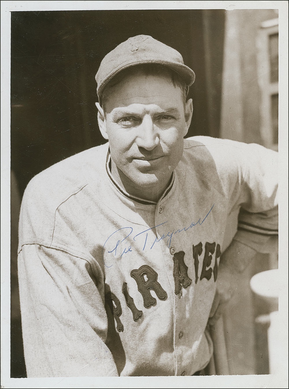 Superior third baseman and Hall of Famer (1899–1972). Vintage glossy 6 x 8 news service photo of Traynor in his Pittsburgh Pirates uniform, signed in blue ink. A July 20, 1937 date-stamp appears on the reverse with a portion of the original paper caption. In fine condition, with scattered creasing. Traynor batted .320 during his 17-year career and never struck out more than 28 times in a season. Pre-certified Steve Grad/PSA/DNA and RRAuction COA.