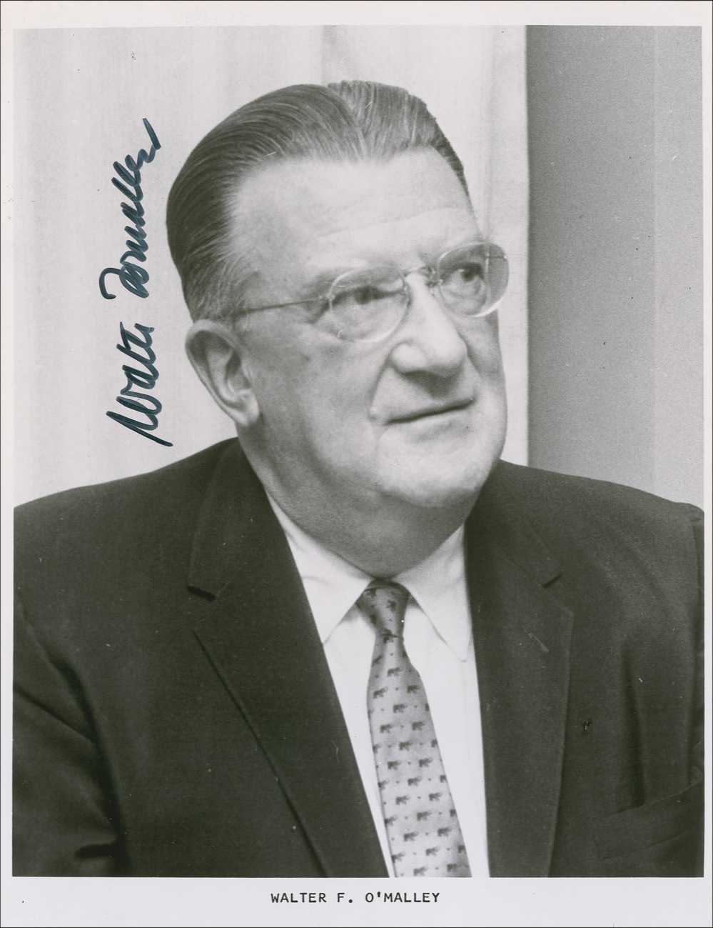 The man responsible for firing Branch Rickey and the team’s unpopular move from New York to Los Angeles. He was posthumously inducted into the Baseball Hall of Fame in 2008. Glossy 8 x 10 photo, signed vertically in black felt tip. In fine condition, with some scattered light surface marks. Pre-certified Steve Grad/PSA/DNA and RRAuction COA.