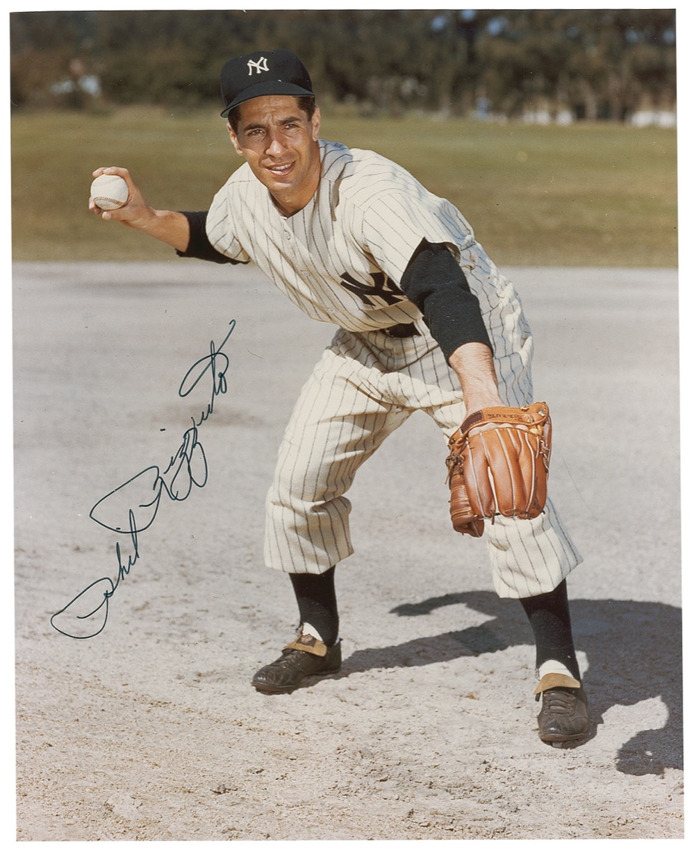 Color glossy 8 x 10 photo of ‘Scooter’ in his Yankee pinstripes, signed in black felt tip “Phil Rizzuto.” In fine condition, with a couple of insignificant surface marks. Pre-certified Steve Grad/PSA/DNA and RRAuction COA.