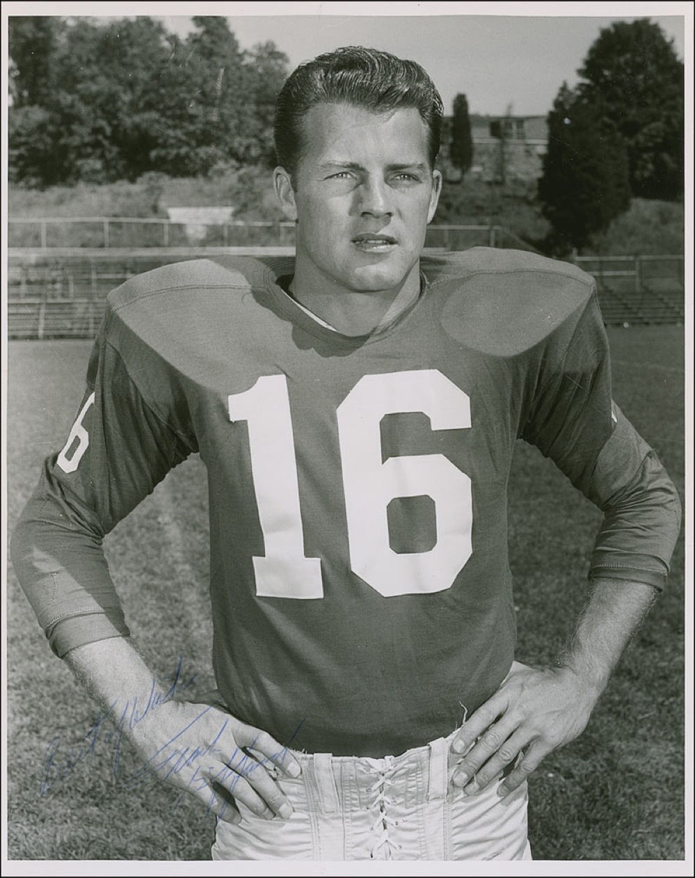 Exceptionally young vintage glossy 8 x 10 photo of Gifford in his uniform, signed in blue ballpoint. Scattered light creases and surface marks, and some light contrast to portion of signature, otherwise fine condition. Pre-certified Steve Grad/PSA/DNA and RRAuction COA.