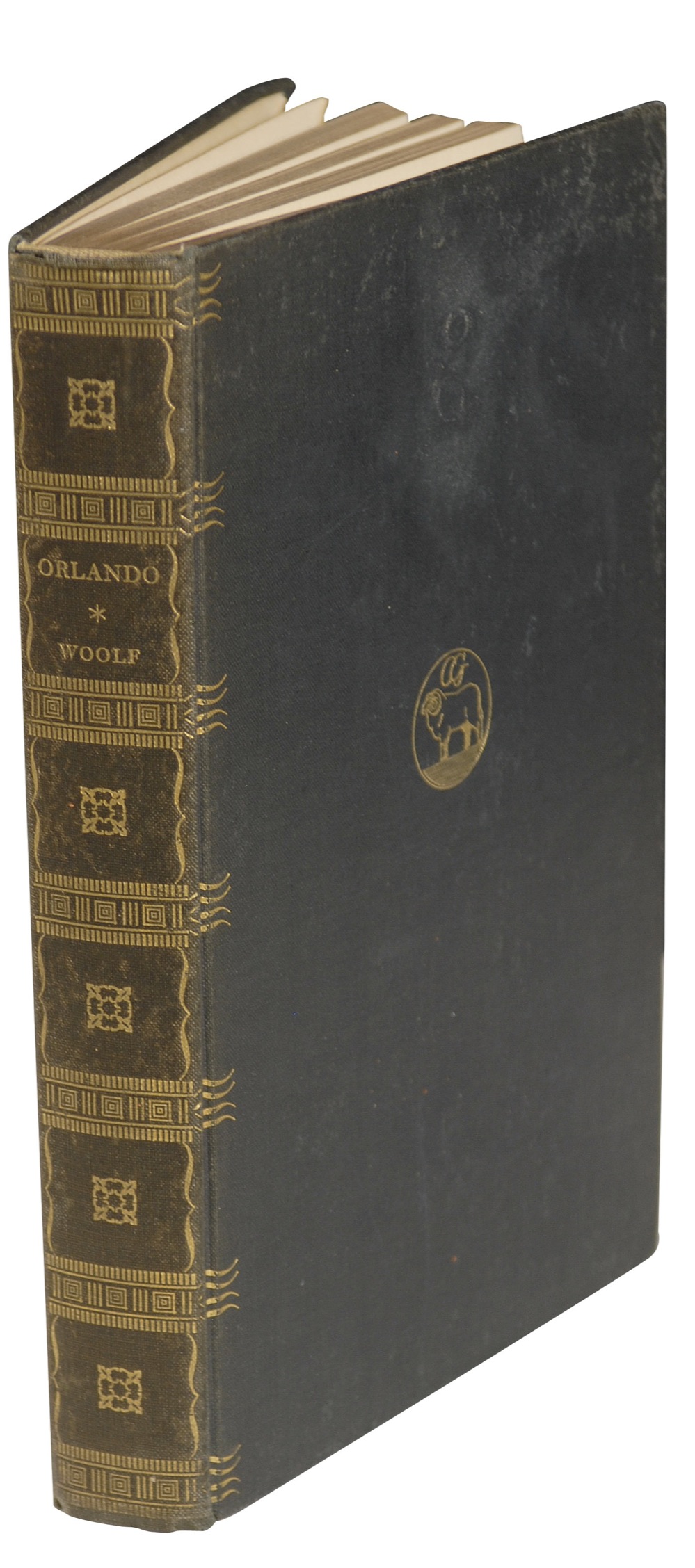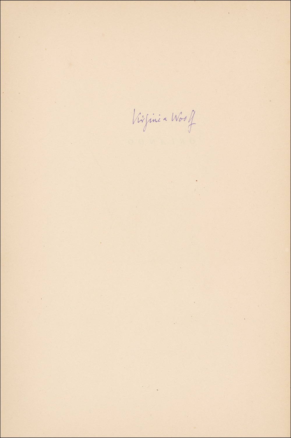 British author (1882–1941) revered as one of the most important writers in the English language. On March 28, 1941, after a final attack of mental illness, she loaded her pockets with stones and drowned herself near her Sussex home. Signed book: Orlando. Limited edition of 800 copies (this being No. 465). NY: Crosby Gaige, 1928. Hardcover, 6.25 x 9.25, 333 pages. Signed in purple ink on the reverse of the half-title page. Owner's bookplate affixed to front pastedown, small pencil notations to first free end page, a uniform shade of toning to all pages, light sunning to spine, and scattered light wear and spotting to covers, otherwise fine condition. Woolf is quite desirable in signed editions; this one is particularly scarce as only 800 copies were printed. Pre-certified John Reznikoff/PSA/DNA and RRAuction COA.