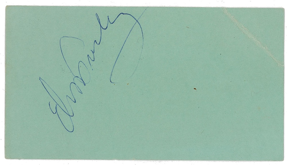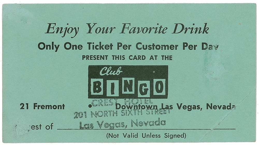 Ballpoint signature, “Elvis Presley,” on the reverse of a pale green 4 x 2.25 complimentary drink card from Club Bingo in Las Vegas. In fine condition, with a creased top right corner not affecting the signature. Pre-certified Roger Epperson/REAL and RRAuction COA.