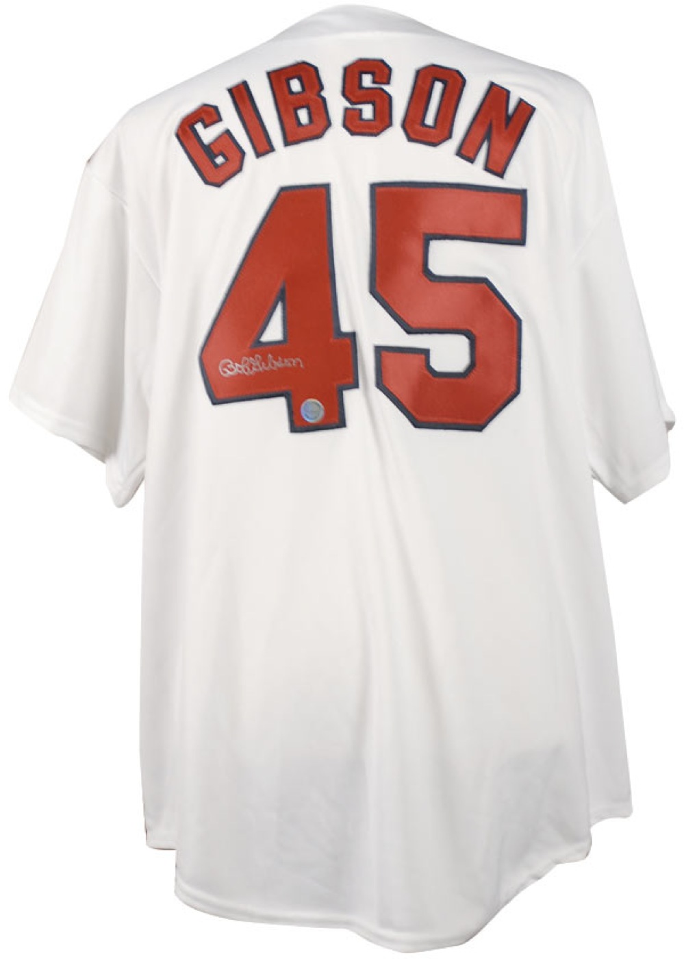 Official Majestic replica St. Louis Cardinals baseball jersey, with sewn on letters and numbers, signed in silver ink on the number on the back. In fine condition. Pre-certified Steve Grad/PSA/DNA and RRAuction COA.